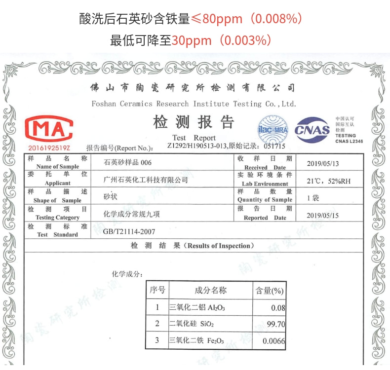 6)循环使用:广州石英化工建议根据我司打样工艺数据所推荐的循环补充方法补加固体石英石清洗剂,确保石英石清洗质量稳定一致。